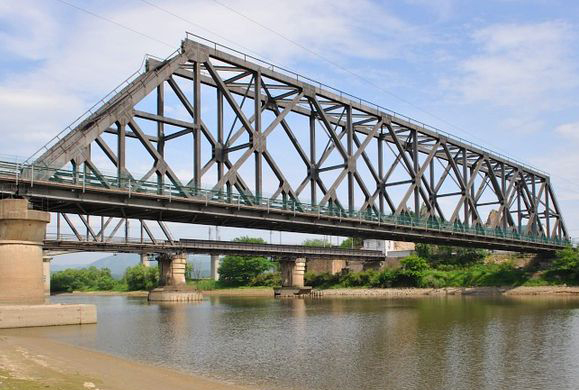装配式公路钢桥(也称贝雷桥,Bailey bridge)。采用交通部颁发的《公路桥涵施工技术规范》( JTJ041—2000 )制作钢便桥。钢便桥具有结构简单、运输方便、适应性强、互换性好、架设速度快、载重量大等特点,广泛应用于抗洪抢险、交通、水利、铁路等工程建设中。